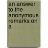Recensies van An Answer To The Anonymous Remarks On A door See Notes Multiple Contributors