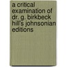 Recensies van a Critical Examination of Dr. G. Birkbeck Hill's Johnsonian Editions door Percy Hetherington Fitzgerald